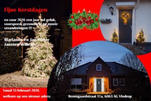 We wensen je fijne kerstdagen en alle goeds in 2026. Wij gaan begin april verhuizen: Boomgaardstraat 17A 6063 AG Vlodrop