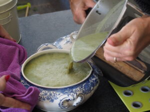 Sodabrood Roer alle droge bestanddelen door elkaar in een kom. Voeg er ca 400 cc karnemelk aan toe en spatel door. Is het te droog
