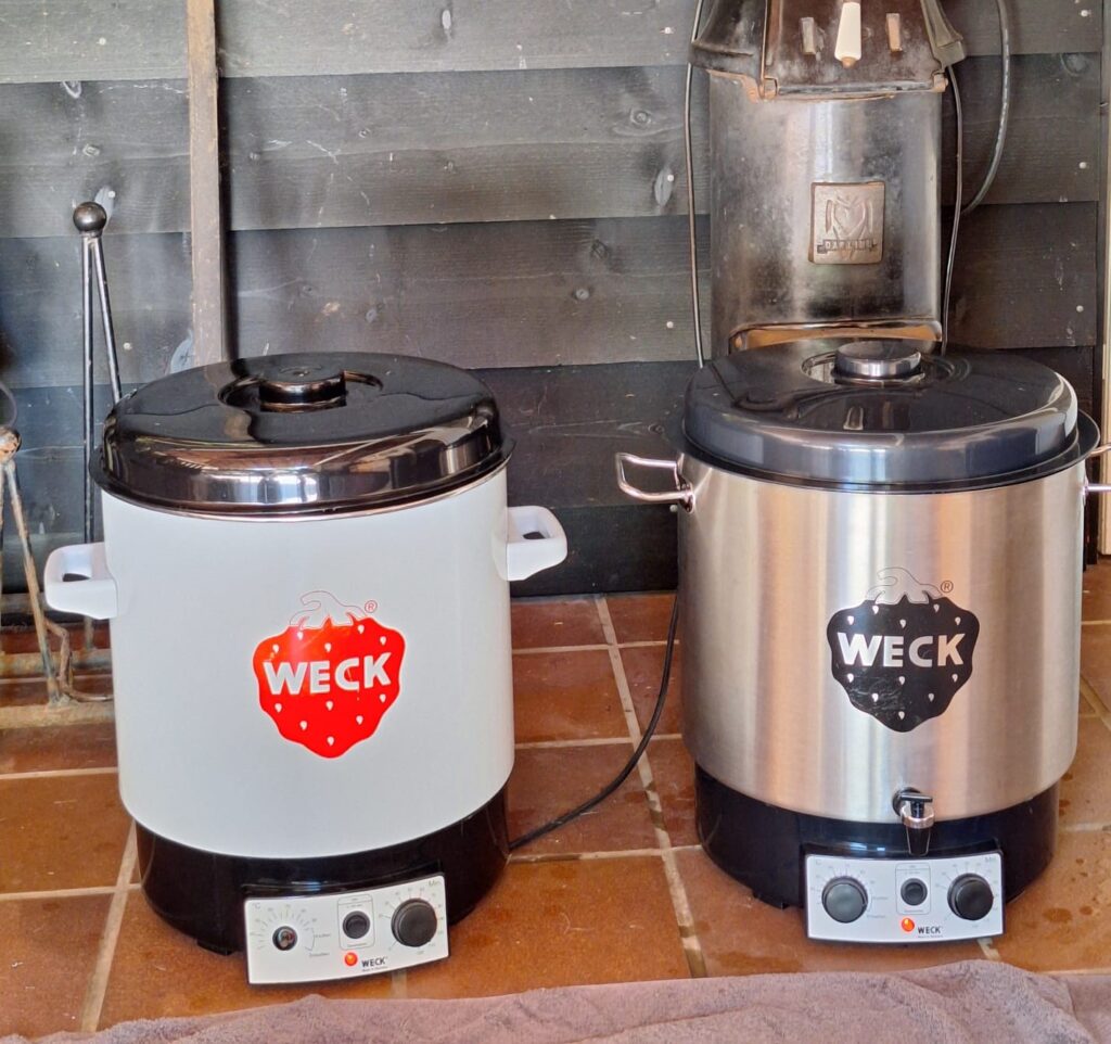 Als je interesse hebt om te wecken kan dat. Met 1-3 personen en twee grote ketels heb je na afloop ca dertig-vijftig potten te verdelen. Kom je alleen, wat ook kan, dan heb je een wintervoorraad waar je ú tegen zegt. Zonder conserveermiddelen, goedkoper dan potten en blikken uit de winkel en vooral véél lekkerder.